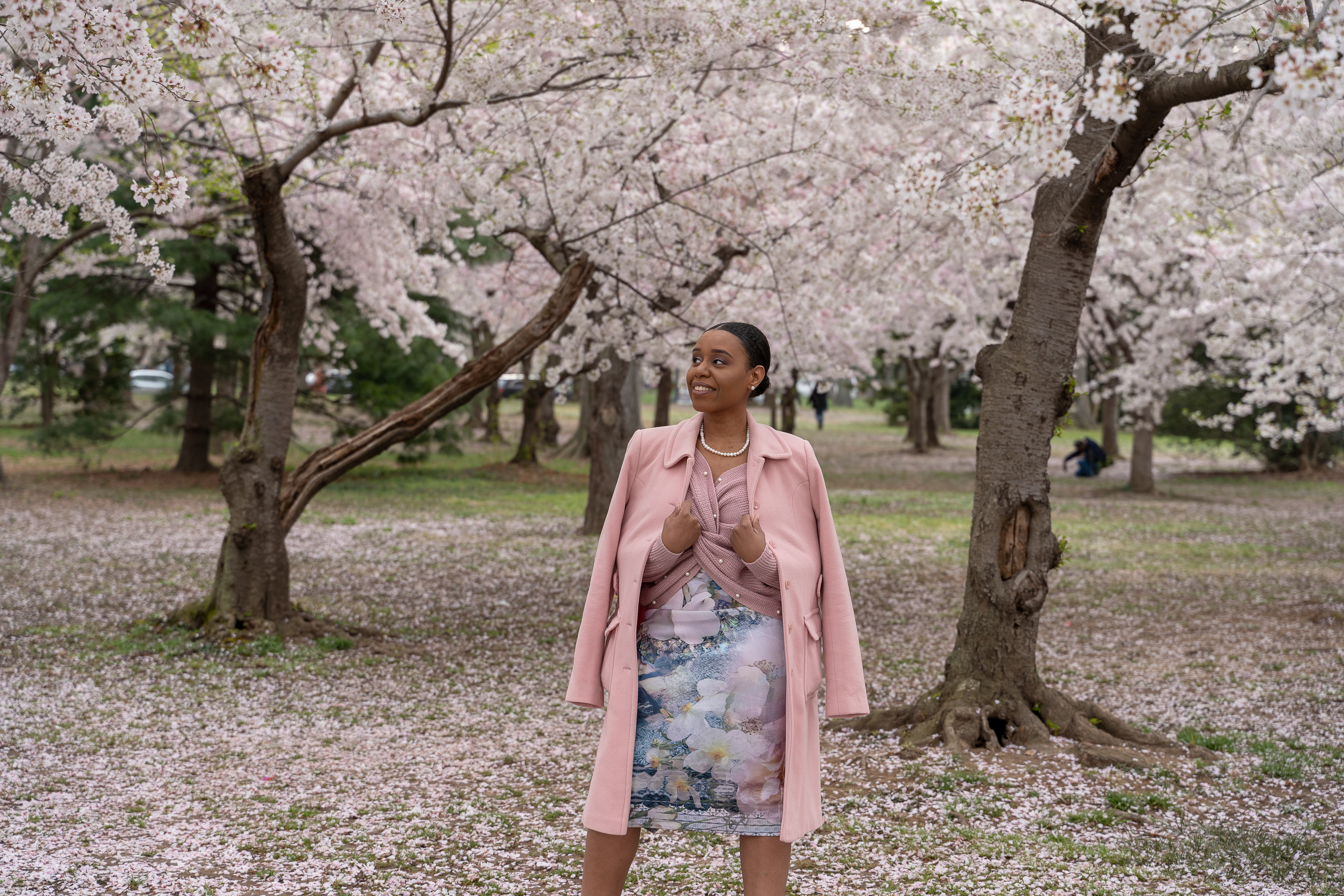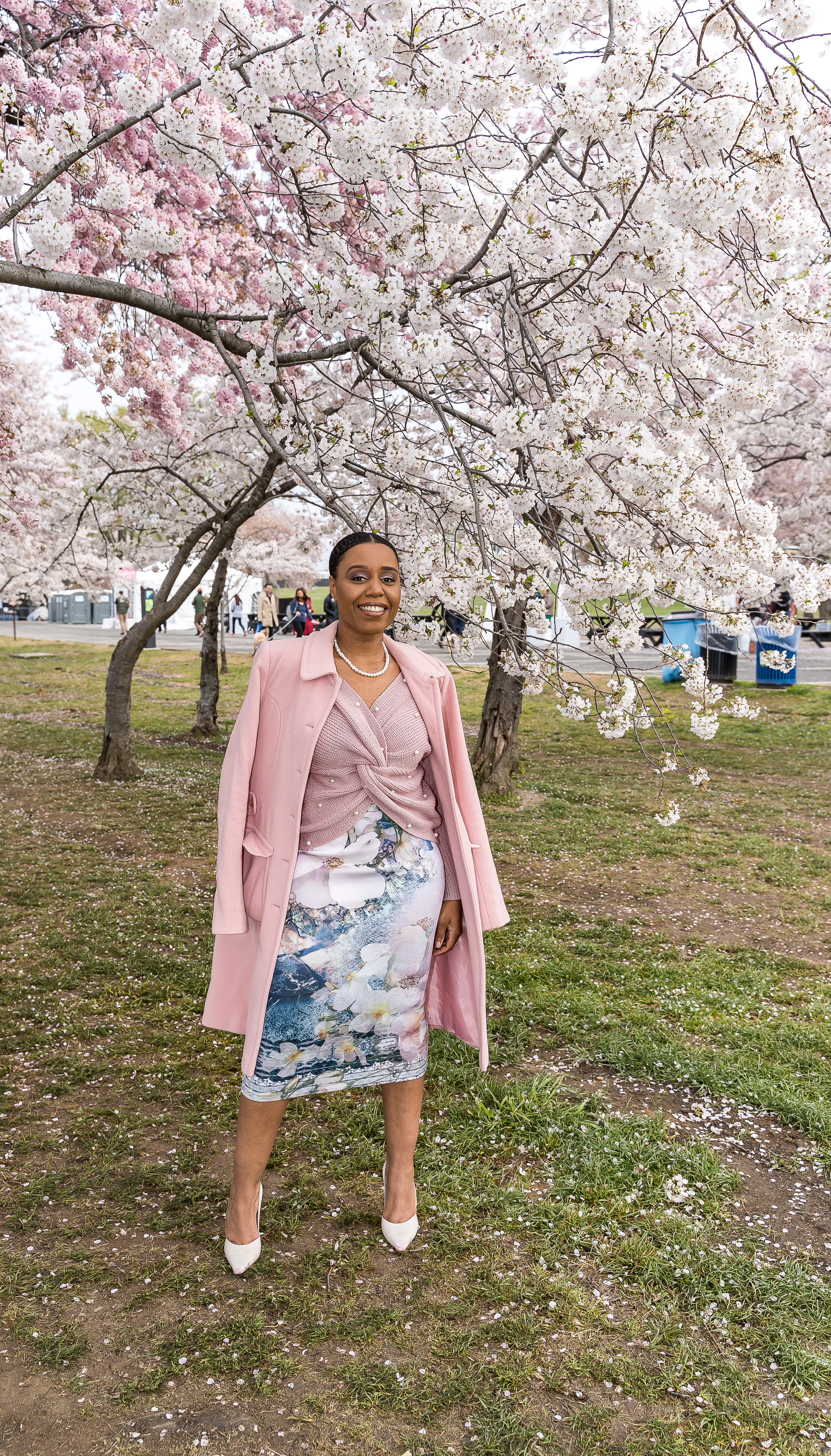 You found the perfect location. I am loving your outfit literally matches the cherry blossoms so chic.